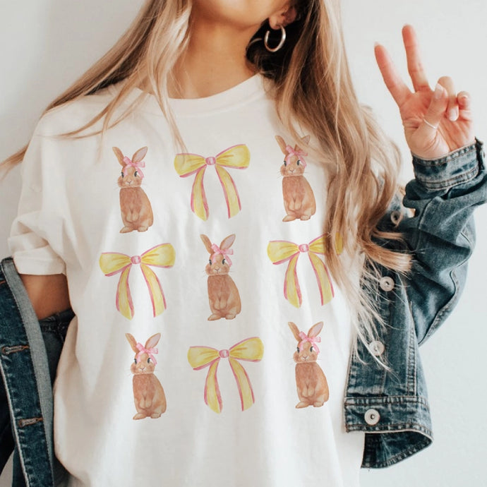 White Easter Bunny & Bows Tee