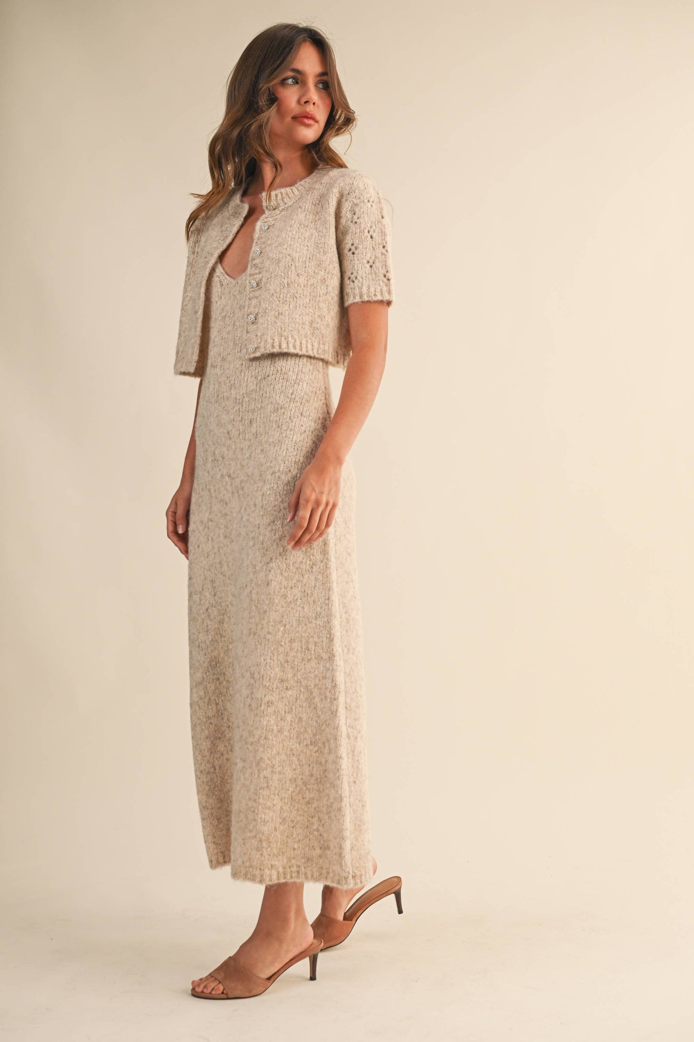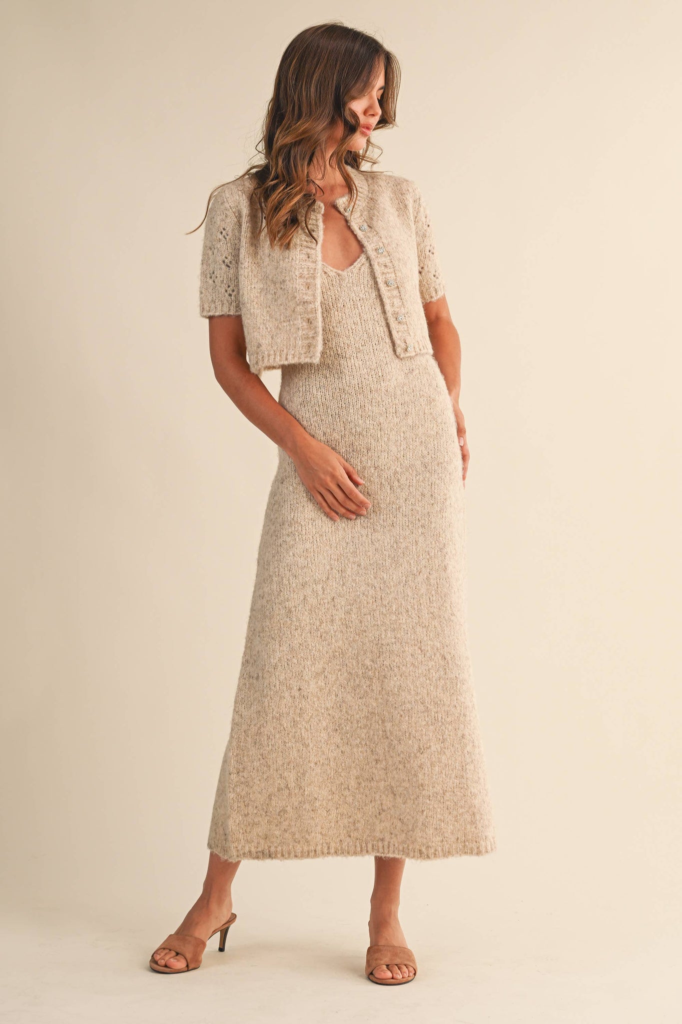 Experience the perfect blend of elegance and modern style with the Sweater Dress and Short Sleeve Cropped Cardigan from Klesis. This carefully crafted set features a versatile dress and a stylish cropped cardigan, both made with exceptional quality. Whether you're attending a special event or keeping it casual, this ensemble adapts effortlessly to your needs. Embrace the fresh, youthful spirit of Klesis’ contemporary collections and elevate your wardrobe with a look that reflects forward-thinking fashion. Don’t miss out on adding this must-have set to your closet.